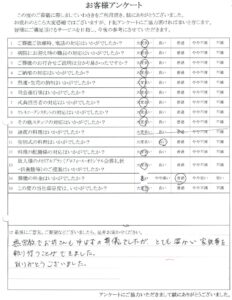 急な事でしたが、滞る事なくスムーズに家族皆であたたかく送れた事に感謝いたします。向井さんホールの皆さん他、使って下さった皆様ありがとうございました。